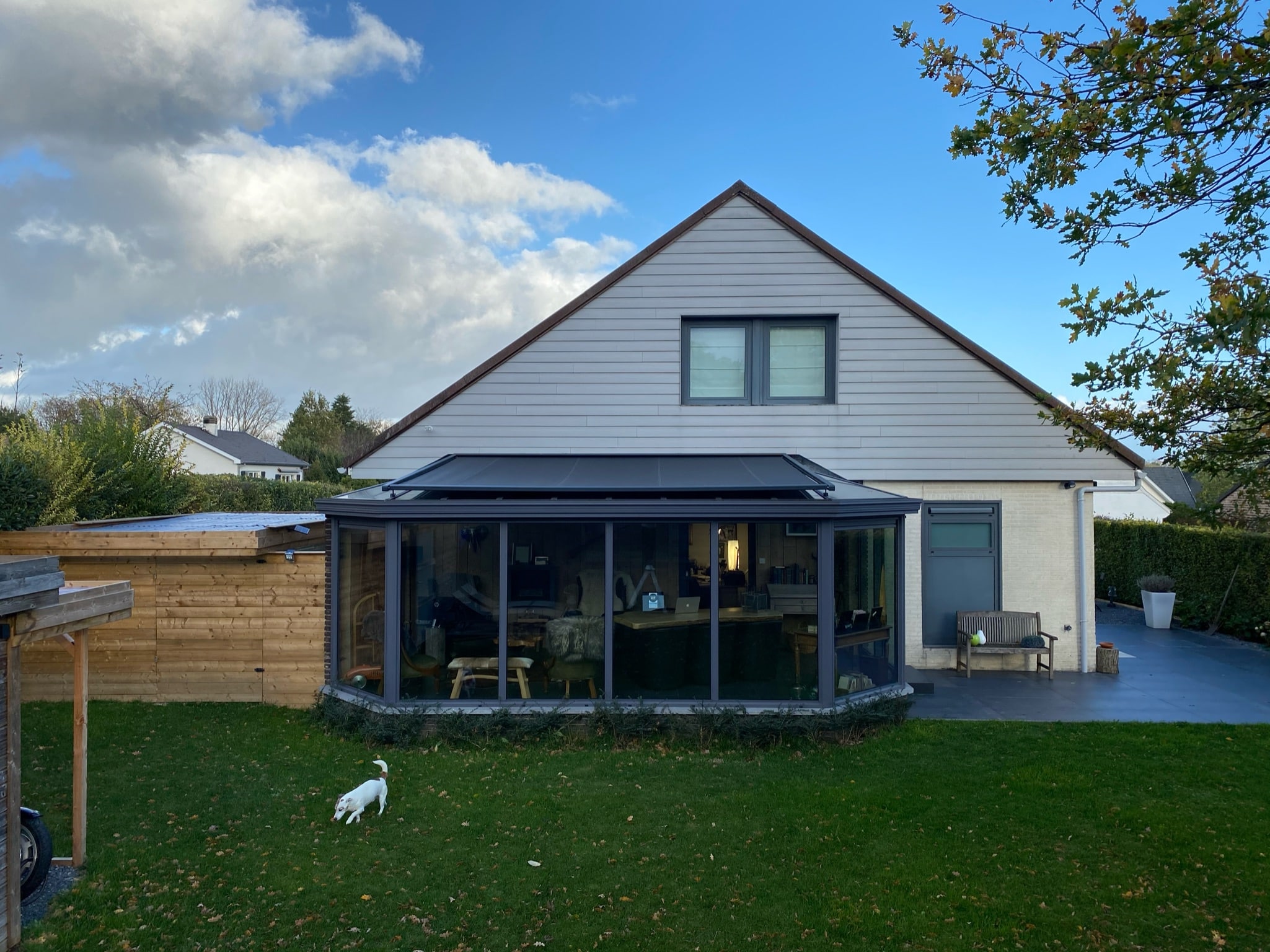 Voor deze woning in Boortmeerbeek realiseerden we een stijlvolle overkapping die perfect aansluit bij de bestaande architectuur. De eigenaar, die zelf een achtergrond heeft in interieurarchitectuur, leverde ons reeds een eerste ontwerp dat wij vervolgens mochten uitwerken. We ondersteunden onze klant met de technische uitwerking en tekenden de plannen voor de gemeentelijke vergunning. Dankzij deze stapsgewijze aanpak groeide de overkapping uit tot een complete, afgesloten buitenruimte.